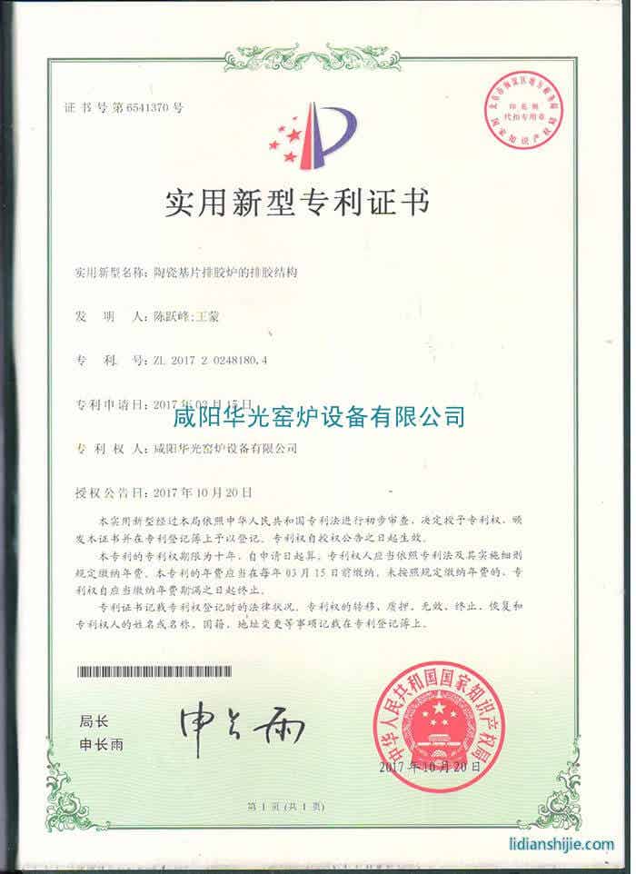 2017年10月27日,我司又获一项新专利“陶瓷基片排胶炉的排胶结构”