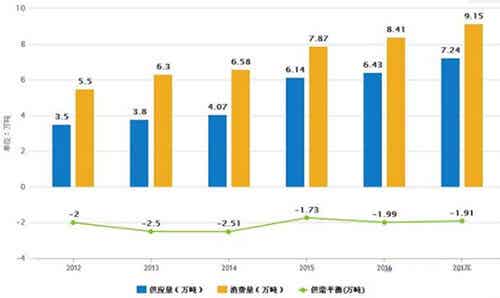 全球锂产量稳步提升,继续保持供过于求的行业态势。前瞻产业研究院发布的《动力锂电池行业市场需求预测与投资战略规划分析报告》预测,2017年产量预期增加42.46%至35.83万吨,需求增长16.58%至28.33万吨,全球过剩7.5万吨。