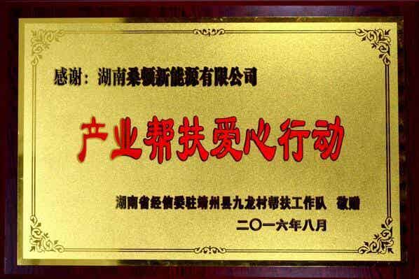 9月5日,湖南省经信委驻靖州县九龙村帮扶工作队为桑顿新能源送上湘西特色礼品和“产业帮扶爱心行动”证书,以此表彰公司在“爱心企业认领古树,助力精准扶贫和产业脱贫活动”中的义举。