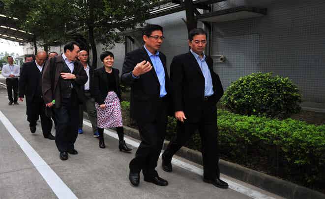 图二:吴晓晖总经理携其余广新控股领导进入生产车间进行参观考察