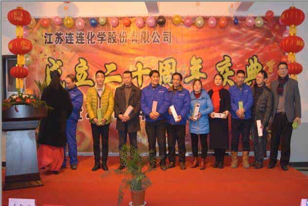 2016年2月1日,庆祝江苏连连化学股份有限公司成立二十周年庆典晚会在连连化学集团大楼隆重举行。连连化学董事长兼研发中心主任连加松先生致开幕辞,分享了公司这20年来的奋斗历程,总经理蔡平杰先生做新春致辞及宣读2016年优秀员工名单。晚会由副总经理秦君林先生负责总的策划与主持。