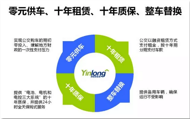 银隆推出的商业模式的金融模型中,可以承诺做到0元购车、十年质保与十年租赁,可以让公交企业实现绿色可持续发展,真正让公共交通市场化,不需要财政支持,不出现财政亏损,让公交企业健康地可持续发展。