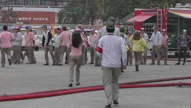 现场逃生人员迅速跑到安全紧急疏散集合点