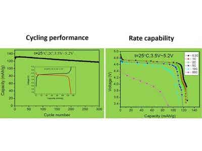 高电压:电压平台4.7 V(以金属锂为负极)高能量密度:能量密度??200 Wh/kg(以石墨为负极)。