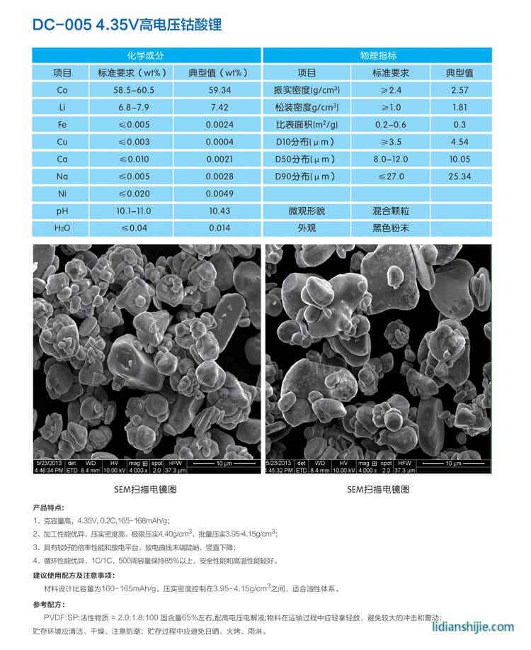 智航新能源DC-005 4.35V高电压钴酸锂正极材料介绍