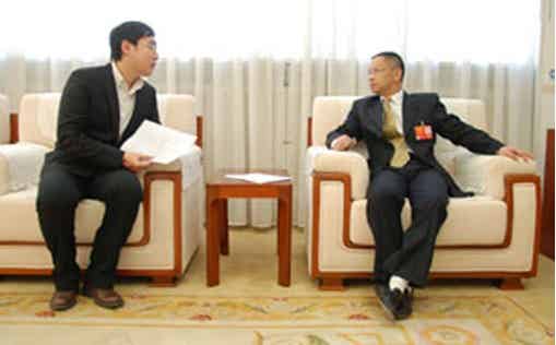 记者黄春棉采访全国人大代表、湖南科力远新能源股份有限公司董事长钟发平。