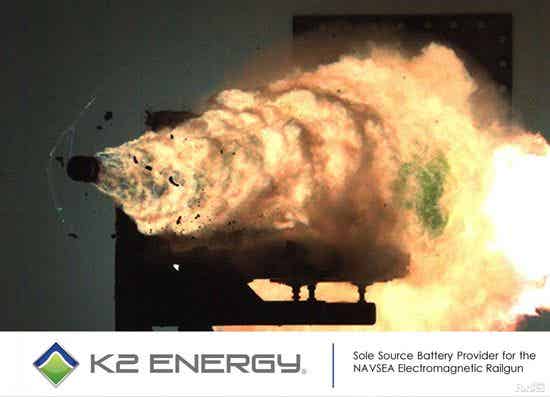 美国海军海上系统司令部(The Naval Sea Systems Command)向总部位于内华达州汉德森(Henderson)的磷酸锂铁电池技术开发制造商K2 Energy Solutions授予了一份价值8,100万美元的合同,用以设计“一种能够向用于电磁轨道炮的大型模块化电容器组供电的储能系统。”