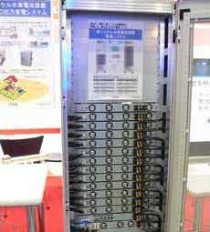 此次展出的蓄电系统的机架型机壳中最多可装备24个电池组,每个电池组中以36串联×6并联的方式配备了直径18mm、长67mm的圆筒形镍氢充电电池单元。FDK在其展台上展出的是配备12个电池组的、容量为10kWh的机型。该系统可通过改变电池组的数量来调整容量,满足不同需求。