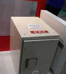 FDK此外还展出了同样使用镍氢充电电池的交流输出型蓄电系统,可直接替换现有的商用电源来使用。蓄电装置采用与上述直流输出型蓄电系统相同的电池组。额定电压为单相双线100V,容量为2.7kWh。输出功率为1kVA时可使用约4小时。除室内机型外,还提供机壳采用防水规格的室外机型,可在办公室及家庭等场所用作应急电源
