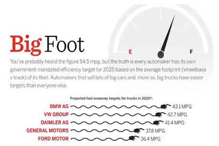 不过话又说回来了。之所以紧凑型小车销量非常好,除能耗较低外,还得归功于另一个有趣的排放标准:碳足迹(carbon footprint)。顾名思义,碳足迹指一个人的能源意识和行为对自然界产生的影响,简单来说就是指个人或企业的温室气体排放量,以二氧化碳为标准计算。因此,每家车企都有着自己的碳足迹指标,而且碳足迹越小,代表该主机厂的平均油耗越低。按照美国环境保护署(EPA)的规划来看,未来低油耗的车型是市场主流,要逐步减少鼓励“缩减车型尺寸以符合排放标准要求”政策的扶持力度。