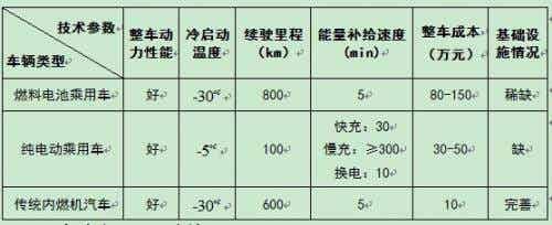 表2 纯电动、燃料电池及传统内燃机对比分析表