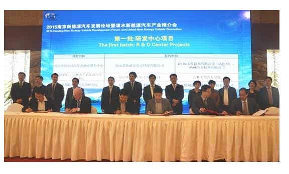南京市溧水区人民政府区长谢元在致辞中介绍,溧水已引进比亚迪、南京金龙2家整车企业,43家零部件企业。2014年,园区内南京比亚迪和南京金龙两家企业累计生产销售新能源客车3090辆,占全国市场的1/4。今年,溧水新能源客车产销目标为6000辆。溧水以打造新能源汽车全产业链为目标,计划在2020年实现新能源汽车产能突破10万辆。