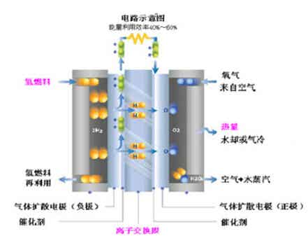 广泛应用于电动汽车的燃料电池是一种称为质子交换膜的燃料电池(PEMFC) ,它以纯氢为燃料,以空气为氧化剂,不经历热机过程,不受热力循环限制,因此能量的转换效率高,是普通内燃机热效率的2~3倍。同时,它还具有噪音低、无污染、寿命长、启动迅速、比功率大和输出功率可随时调整等特性,使得PEMFC非常适合用作交通工具的动力源。