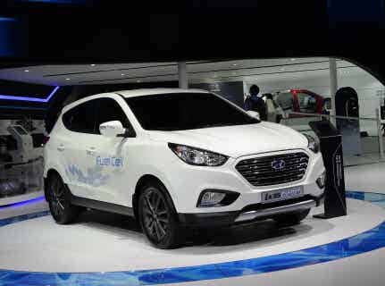 我们就拿车展上这台早已量产的现代ix35 FuelCell为例,来看看采用燃料电池技术的纯电动车有哪些显著区别。从外观上来看,使用燃料电池系统的车型并无明显差异,不过相对一般电动车来说,燃料电池电动车型会与使用内燃机车型一样设计有前进气格栅,因为燃料电池的反应同样需要“进气”来与液氢作用产生电力。