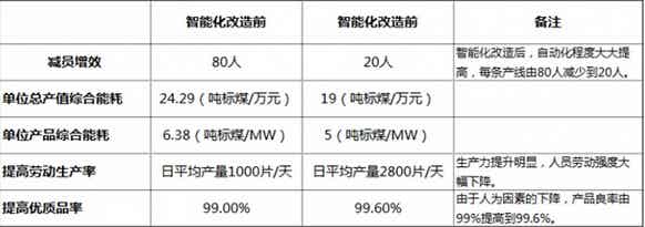 “江苏省示范智能车间”是实施技术改造、提高智能制造水平,推进制造业向中高端迈进的重要举措,是江苏省对“中国制造2025”制造强国战略的成功实践,将来有望推广到全国。通过示范智能车间建设,将大大提升企业自动化、智能化技术水平,提升行业创新能力和可持续发展能力,提升中国制造的国际竞争力。就光伏行业而言,智能车间建设将有效降低客户的投资成本、提高投资效率,加快光伏的应用推广速度,逐步减少传统能源供应比例,减少污染,缓解国民经济高速增长给能源供应带来的巨大压力。