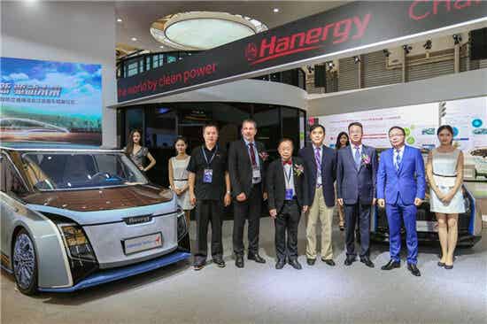 联合国欧洲经济委员会秘书处可持续发展部部长Mr.Walter Nissler,中国工程院院士、APEC-IOV专家委员会主席陈清泉院士、中国能源网首席研究员韩晓平、上海市国际展览有限公司董事长兼总裁顾春霆、汉能控股高级副总裁张彬、汉能控股副总裁高卫民博士为汉能全太阳能动力汽车揭幕