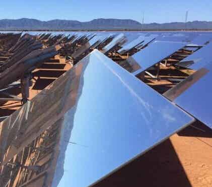 落日农场的太阳能来自于2.3万个镜子,它们会向一个115米高的接收塔反射日光。天气晴朗时,一天能够产生3900万瓦特的能量,足以支持海水脱盐厂,并提供温室所需的电量。