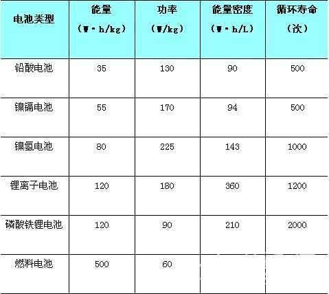 新能源电池性能比较