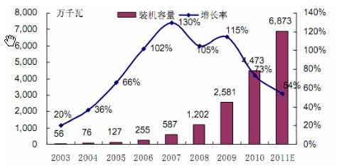 图5 2003年~2011年风电装机概况