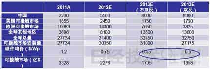 2012年前三季度,太阳能电池组件出货量约18GW,预计全年将达23GW,但产值同比将大幅下降。2012年预计新增装机量4~5GW,同比增长66%以上。