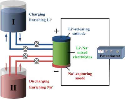 图2:混合离子电池分离Li+/Na+的原理示意图