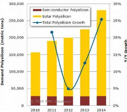 根据NPD Solarbuzz,由于预计2014年全球终端市场需求达49GW,多晶硅需求正在大幅提高。