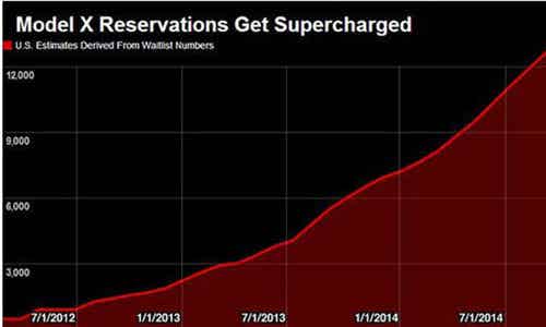 如图所示,Model X的订金累计额明显高于2012年6月上市的Model S,而且增长速度更快。