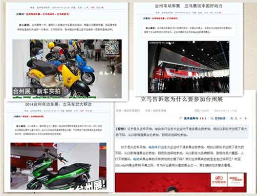 本次展会立马跳出传统展会上静态的传播模式,从展厅整体设计上传递“马年红火”的概念;以“寻找立马红(寻找最红立马电动车)”互动活动作为“马年红火”的衍生项目,将立马本时段主推产品融入其中,无形中加深新品印象,可谓一绝;巧妙结合互联网思维、创新微营销技巧,现场开展系列精彩微信互动活动;另外,立马不仅在展厅内进行大刀阔斧的传播改革,更在户外交相开展飞车表演、互动游戏等精彩项目……立马当之无愧2014年台州展会之创新最多企业!
