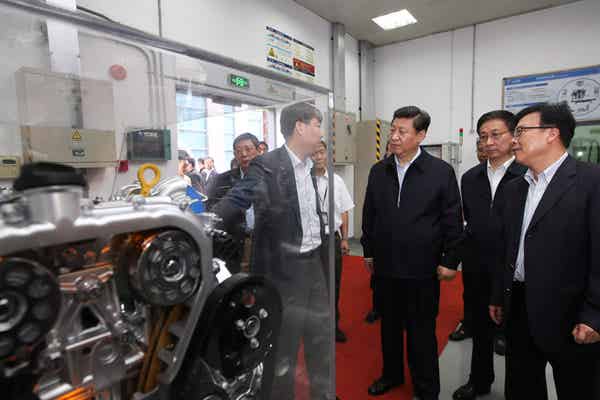 习近平在上海汽车集团技术中心动力总成试验室了解开发新能源动力汽车情况。
