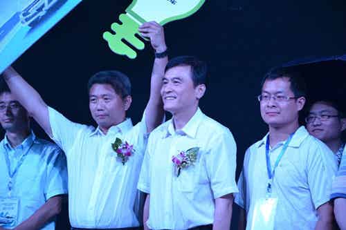 江淮iev4北京上市仪式现场,安进(左三)向车主交付钥匙