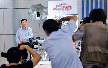 王传福在比亚迪总部非常配合地让摄影师们拍照
