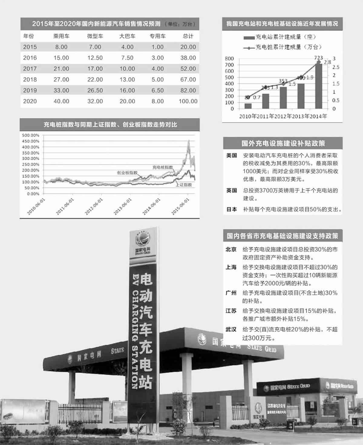 根据相关预测,2015年全球电动汽车销量将达到110万辆,2020年将达到690万辆,年均复合增长率44%,全球新能源汽车行业增长空间巨大。在全球范围内电动汽车发展提速的同时,国际充电基础设施的发展也驶入快车道。美国、英国、日本等政府对电动汽车和充电设施采取了刺激性的补贴政策,极大地推动电动汽车和充电设施的建设和发展。