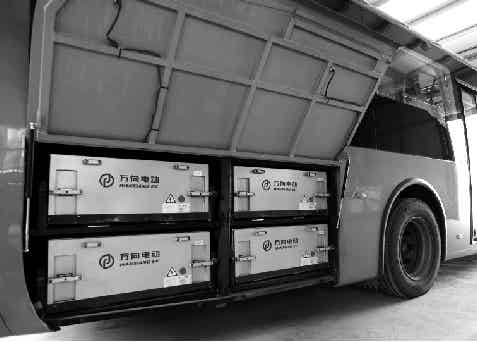 据记者了解,5辆纯电动公交车,是万向集团研发的,12米车身长度、造型和普通公交车差不多,每辆车,共有10个纯电动车载电池,分别安装在车身两侧。