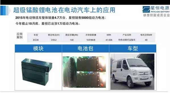 由于我国新能源汽车推广路线的不同,以磷酸铁锂商业化最突出,并且随着对比能量的追求,开始加快推进三元。然而,以星恒为代表的一批动力锂电池企业仍采用与国际接轨的锰酸锂技术方案,并开展了大胆的创新,发挥其优势,主力应用在商用车领域。
