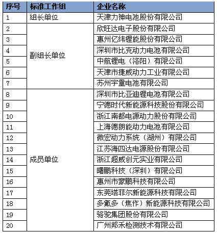 《锂离子电池企业安全生产规范》协会标准工作组成员单位