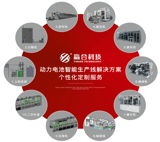 目前,赢合科技的锂电装备产品已覆盖了整个动力电池生产环节,整线产品从前道的自动制浆系统、涂布机系列、辊压机系列、分切机系列、制片机系列、卷绕机系列、模切机系列、叠片机系列、组装自动线,到后道的注液机系列、化成机系列、动力电池生产线等均有涉及,为动力电池制造企业定制生产高精度、高稳定性的智能化生产设备。