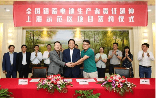 5月28日,超威集团、上海鑫云贵稀金属再生有限公司、上海有色网在浙江省长兴县举行全国铅蓄电池生产者责任延伸上海示范区合资合作项目签约仪式,三方将结合各自优势,强强联合,推动全国铅蓄电池生产者责任延伸体系建设,此举标志着全国铅蓄电池生产者责任延伸迈出了重要一步。