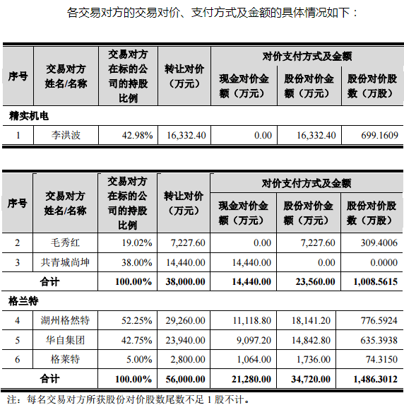 本次交易完成后,精实机电、格兰特将成为华自科技的全资子公司。本次交易包括发行股份及支付现金购买资产和发行股份募集配套资金两部分。