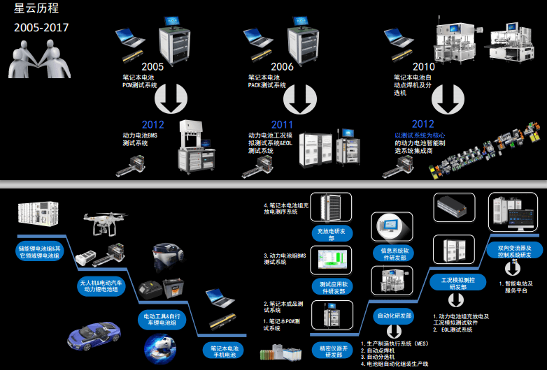 星云股份成立于2005年,发展至今已有600多名员工,2016年度销售收入为2.2亿元。公司高度融合锂电池检测、电力电子、自动化等行业技术,以高精度的锂电池检