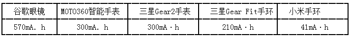 调研机构Canalys给出的数据显示:2013年下半年,全球有160万台健康腕带和智能手表出售。中国IT研究中心(CNIT-Research)预计可穿戴设备2014年全球销量总额将同比增长350%至2270万台,2017年销量将突破1亿台,产品还是集中在健康腕带和智能手表两类。随着可穿戴设备的流行和产品市场的深入,很多电池厂家也随着市场的需要开发出了穿戴设备使用的锂离子电池。考虑到电池重量要轻、体积要小、安全性要高及电池形状和尺寸设计方面的问题,智能珂穿戴设备用锂离子电池主要以聚合物锂电池为主。以目前市场上流行的几款只能可穿戴产品为例。