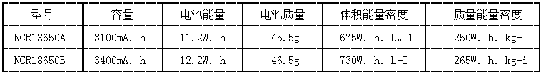 松下公司3.1A.h的高容量锂离子电池已经成功应用在电动汽车上,特斯拉Model S车型所选用的就是松下3.1A.h的18650圆柱电池,今后松下公司生产的3.4A.h或更高容量的电池也将用在特斯拉的其他新型车型上。松下公司的两款高能量单体电池的部分指标见表2.