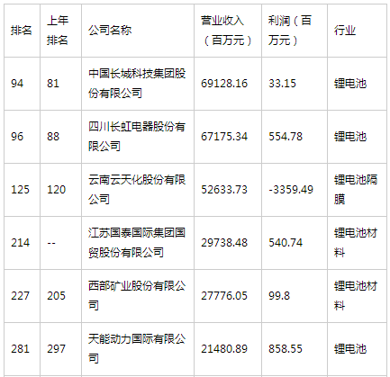 核心提示: 7月31日,2017《财富》中国500强企业排行榜发布。经过梳理后发现,12家锂电池相关企业入选,其中江苏国泰、合力泰2家锂电池产业链公司均为首次入选中国500强。