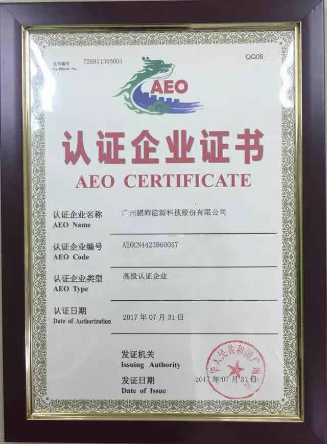 核心提示:近日,经过中国海关专家组认证审核,广州鹏辉能源科技股份有限公司(简称“鹏辉能源”,股票代码:300438)获得中国海关认定的最高信用等级“海关高级认证企业(AEO)证书”。