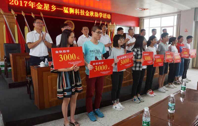 据了解,自2010年起猛狮科技已连续8年在金星乡举办金秋助学活动,共资助大学新生200多名。