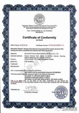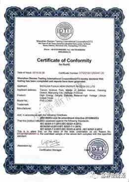 四川富骅新能源科技有限公司产品荣获RoHS认证证书