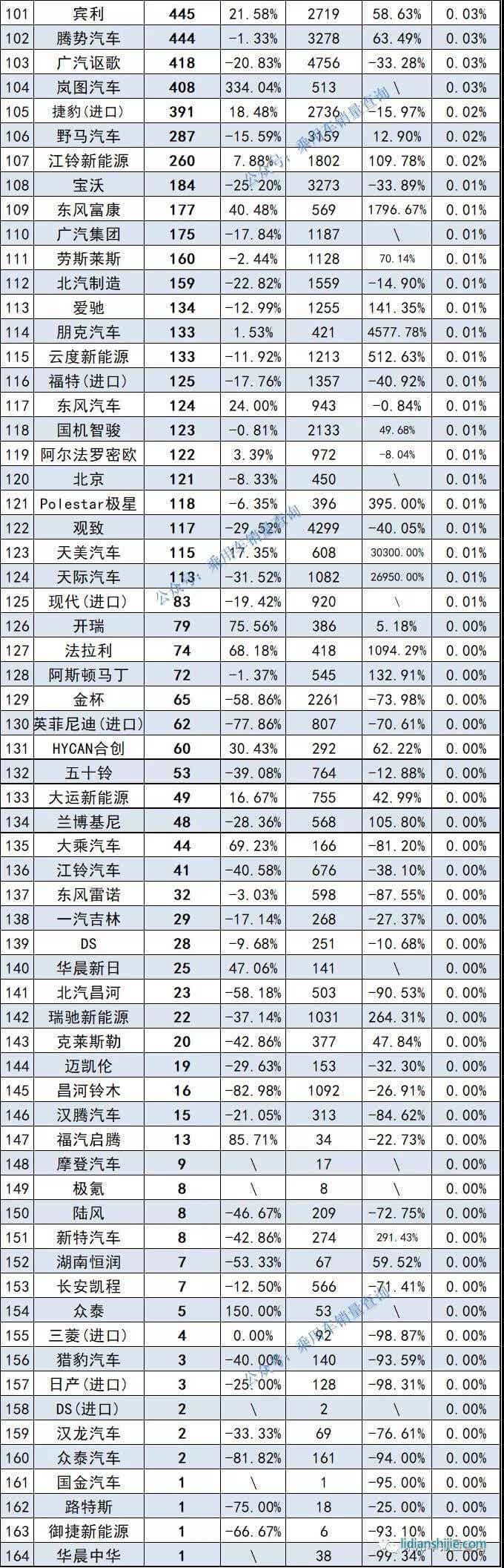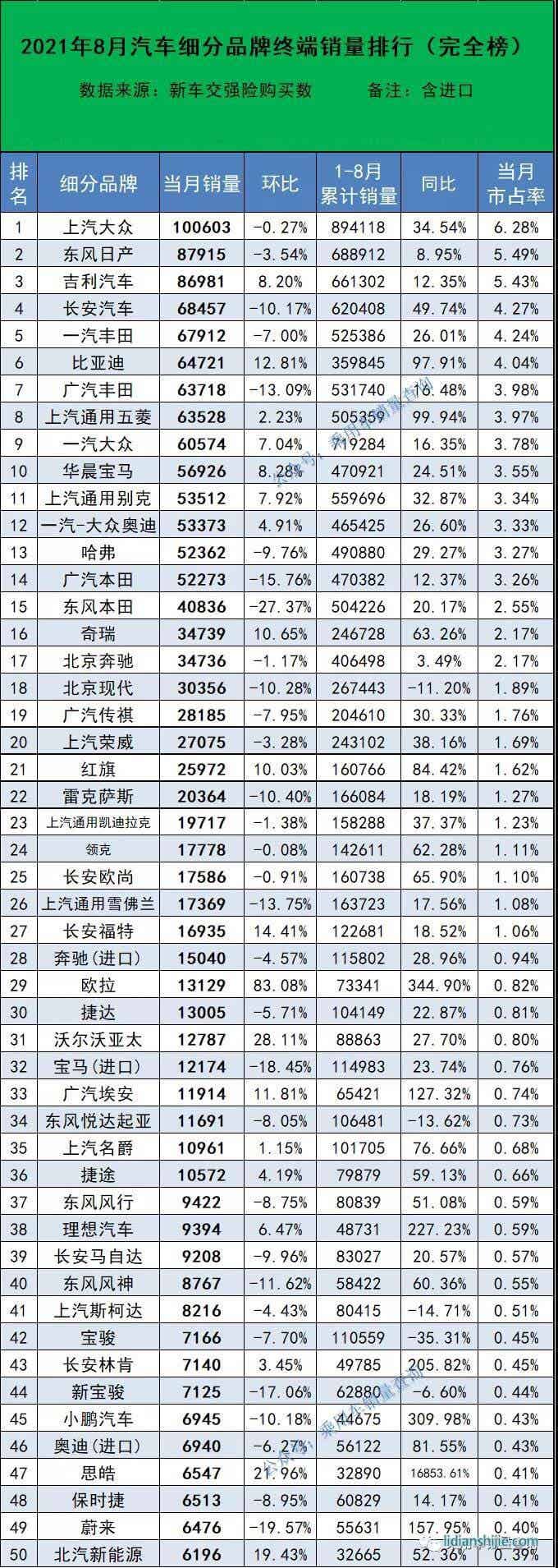 以上是8月终端销量品牌排行榜,数据来源新车交强险购买数,你的爱车品牌上榜了,欢迎留言分享。