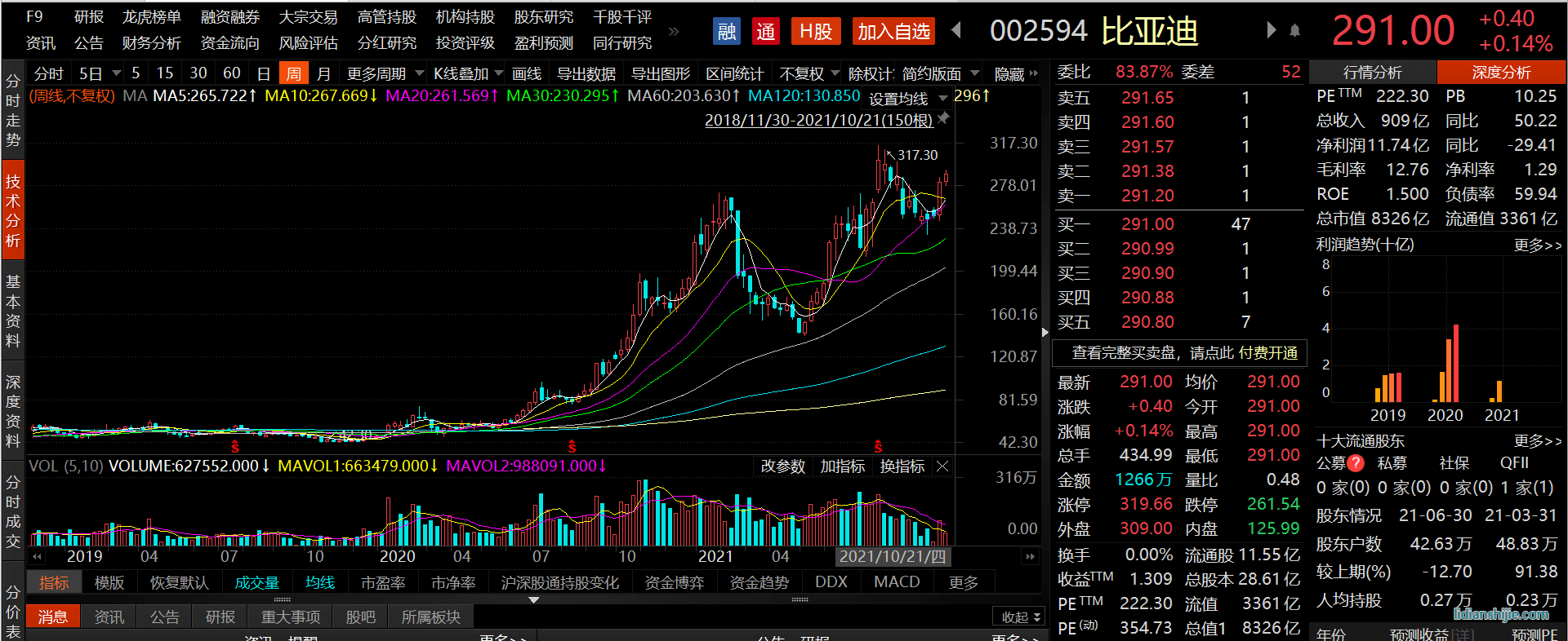 比亚迪股价则是从去年5月份55元左右上涨到截至20日收盘的290.6元,上涨幅度达到了428%,总市值也超过8000亿,而在八月初时,比亚迪市值一度超过9000亿。