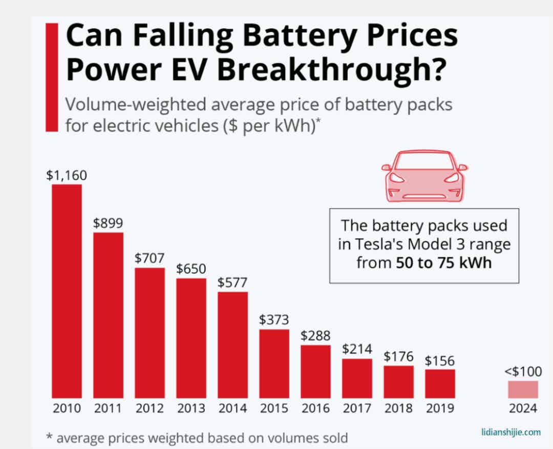 但感谢中国供应链的杀入,锂电池行业降本的速度快的异乎寻常。根据BloombergNEF的数据,动力电池从2010年的每千瓦时1160美元,已经下降到2019年的156美元,9年时间,价格下降了将近87%。