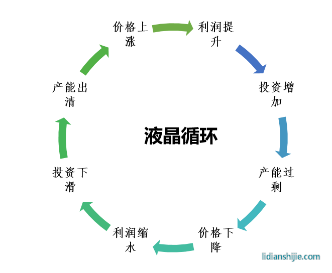 这些年,大家客厅里的电视屏幕越来越大,这就是半导体行业需求、产能与价格共振的例子,也叫做液晶循环(Crystal Cycle)。
