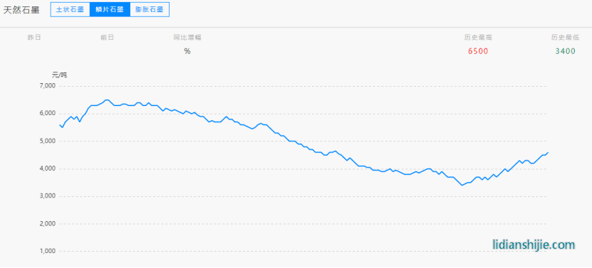 首先从天然石墨的价格来看,在今年初碰到了一个高点之后,下跌的幅度比较大,鳞片石墨直接从6500元/吨跌至九月初的3400元/吨。但这个产品最近两个月时间开始有所反弹,价格已经回到了4600元/吨。
